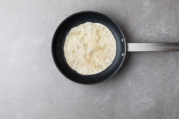 Die Pfanne auswischen und 8 Tortillas nacheinander auf jeder Seite ca. 15Sek. bei mittlerer Hitze erwärmen. Tipp: Alternativ jeweils 4 Tortillas aufeinanderstapeln und bei 800W 35–40Sek. in der Mikrowelle erwärmen. Den Vorgang mit den übrigen Tortillas wiederholen. Die Tortillas mit dem Hähnchen-Gemüse-Salat füllen und servieren.