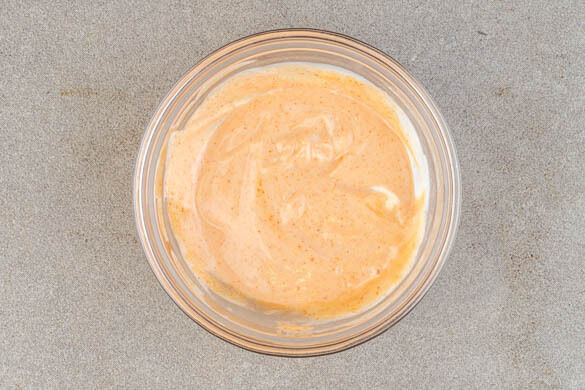 6EL Mayonnaise mit der Sriracha-Sauce verrühren. Die Brötchen aufschneiden und mit der Sauce bestreichen, dann mit dem Hackfleisch und etwas Salat belegen und mit dem restlichen Salat als Beilage servieren.
