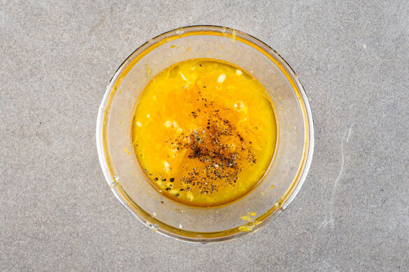Das Fleisch trocken tupfen, von beiden Seiten mit je 1 Prise Salz und Pfeffer würzen und in einer großen Pfanne mit 1EL Olivenöl bei mittlerer Hitze auf jeder Seite 3–4Min. braten, bis das Fleisch schön gebräunt ist. Das Fleisch auf einem Teller beiseitestellen, die Pfanne mit dem Bratfett aufbewahren.