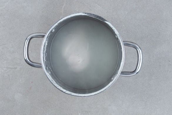 In einem kleinen Topf 300–400ml leicht gesalzenes Wasser zum Kochen bringen. Das Fleisch in das kochende Wasser geben und abgedeckt bei mittlerer Hitze ca. 15Min. sanft köcheln lassen.