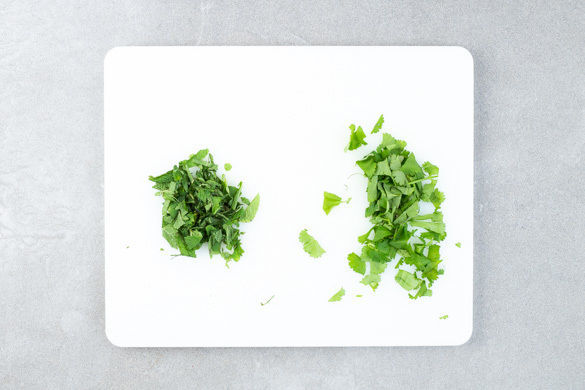 Die Minze- und die Korianderblätter abzupfen und grob schneiden. Das Gemüse, das Fleisch und die Kräuter auf den Nudeln anrichten, mit etwas Würzsauce beträufeln und mit den Erdnüssen garnieren. Den Salat am Tisch nach Belieben mit mehr Würzsauce vermengen und genießen.
