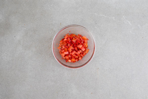 Die Peperoni fein hacken. Die restliche Tomate in kleine Würfel schneiden und mit der 1/2 der Peperoni, 1–2EL Essig sowie Salz und Pfeffer zu einer Salsa verrühren. Das Curry mit 1EL der Salsaflüssigkeit und ggf. Salz und Pfeffer abschmecken und mit dem Reis und dem restlichen Paneer-Käse anrichten und servieren. Die Tomatensalsa dazu reichen.