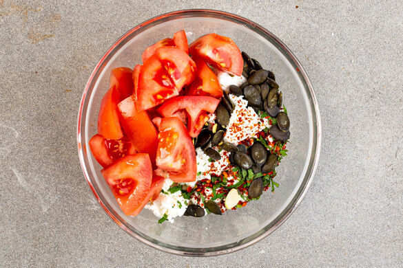 Menemen ist eine türkische Rührei-Spezialität, die nach einer kleinen Stadt in der Provinz Izmir benannt ist und sich sowohl als herzhaftes Frühstück als auch nährende Hauptspeise großer Beliebtheit erfreut. Heute servieren wir die Leckerei aus knackfrischer Paprika, fruchtigen Tomaten, Zwiebeln und Knobi in feinen Mais-Tortillas und bestreuen sie mit einer Handvoll Feta-Topping mit Minze, Chili und Kürbiskernen. Lecker!