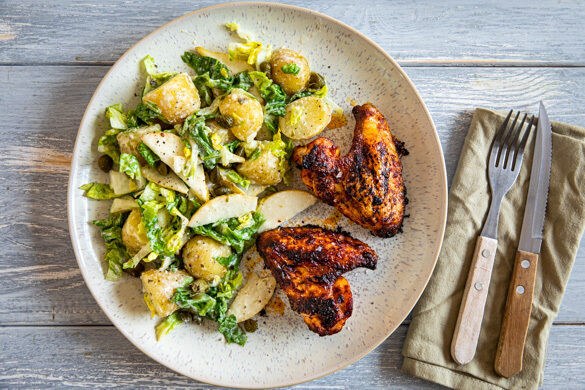 Buffalo Chicken ist in Buffalo, New York seit den 70er-Jahren „hot“, und das nicht nur wegen der köstlichen, pikanten Sauce! In der klassischen Zubereitung werden sie frittiert, aber auch ganz ohne Fritteuse werden sie einfach großartig. Zu den im gebackenen Drumsticks reichst du einen fruchtigen Kartoffelsalat mit dem besten Kapern-Käse-Dressing ever. Delicious!