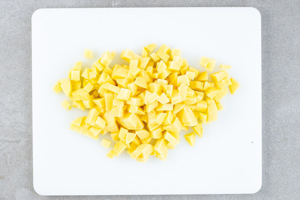 Die Kartoffeln schälen und in ca. 1cm kleine Würfel schneiden.