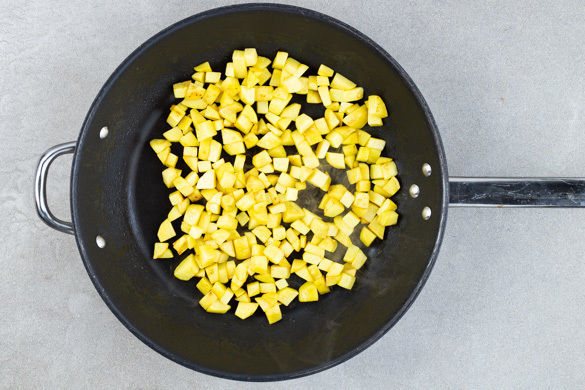 Die Kartoffeln schälen und in ca. 1cm kleine Würfel schneiden.