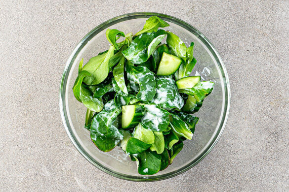 Auf unseren Tellern präsentiert sich das kräftige Rindersteak heute in allerfeinster Begleitung: Denn ein milder Feldsalat, hier in einer größeren Portion für noch mehr Protein, zieht mit knusprig ausgebackenen Süßkartoffelwürfeln und angerösteten Kürbiskernen alle Blicke auf sich. Wer dazu noch erfährt, dass sich in dem cremigen Dressing italienischer Käse verbirgt, kann die Finger sowieso nicht mehr davon lassen ...