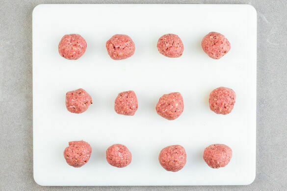 Das Hackfleisch mit 2EL Senf, dem Panko-Paniermehl, 4EL Sahne und je ½TL Salz und Pfeffer vermengen und alles gut durchkneten. In walnussgroße Bällchen formen.