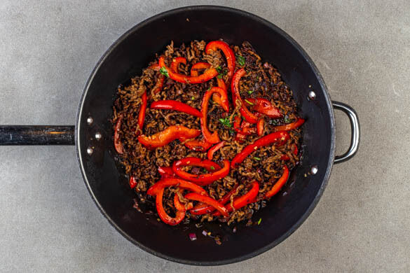 Das Hackfleisch in derselben Pfanne in 3–4Min. goldbraun und krümelig braten.