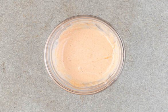 Die Sriracha-Sauce mit 4EL Mayonnaise und 2EL Ketchup vermengen. Tipp: Wenn es weniger scharf sein soll, nur die ½ der Sriracha-Sauce verwenden. Die Brötchen aufschneiden und nach Belieben mit dem Dip bestreichen. Mit den Tomaten, dem restlichen Salat und den Röstzwiebeln füllen und mit dem Karottensalat als Beilage servieren.