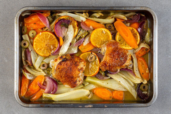 Die goldbraunen Hähnchenschenkel, feine Fenchelscheiben und milde grüne Oliven verbreiten eine geradezu festliche Stimmung. Dazu noch der Duft von herb-würzigem Rosmarin und frischen Zitrusfrüchten, der aus der Küche in die Nasen der hungrigen Tischgäste strömt … Hier sind sich alle sicher schnell einig, dass ein kulinarischer Hochgenuss wie dieses köstliche Mahl auch im Alltag alles besser macht!