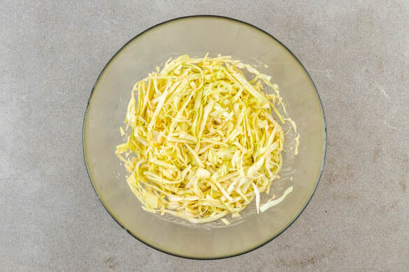 2EL Olivenöl, 2EL hellen Essig (am besten Apfelessig), ½EL grobkörnigen Senf, ½TL Zucker und je 1 kräftige Prise Salz und Pfeffer zu einem Dressing verrühren. Mit den Zwiebelstreifen vermengen und beiseitestellen.