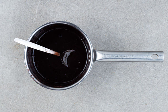 Die 1/2 des Kakaopulvers und 6EL Pflanzenöl in den Zuckersirup rühren, bis eine glatte Paste entsteht.