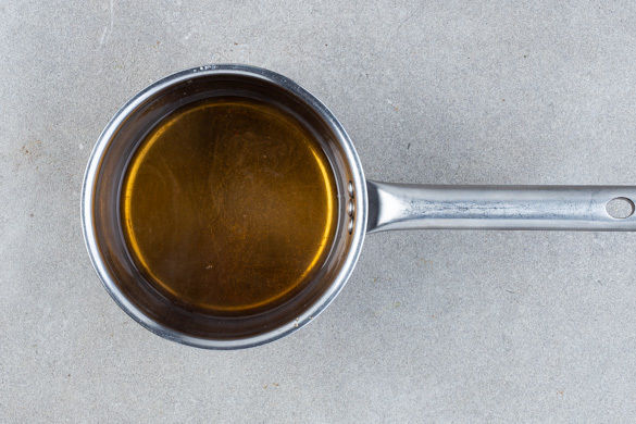 In einem kleinen Topf 3EL Zucker mit 6EL Wasser verrühren und bei mittlerer Hitze langsam erwärmen, bis sich der Zucker aufgelöst hat. Den Ahornsirup und 1 Prise Salz unterrühren.
