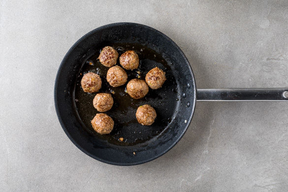 Die Köttbullar in einer großen Pfanne mit 1EL Pflanzenöl bei mittlerer Hitze 2–3Min. rundum anbraten. Währenddessen den Schnittlauch in feine Röllchen schneiden. Die Köttbullar aus der Pfanne nehmen und auf einen Teller geben.