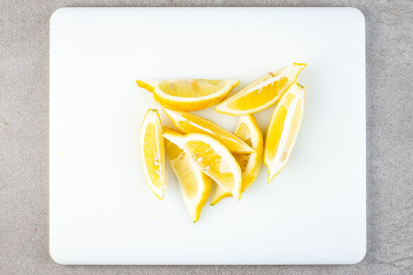 Die Zitrone in Spalten schneiden. Den Fisch mit dem Ofengemüse anrichten, mit dem ausgetretenen Saft vom Blech beträufeln und mit den Zitronenspalten servieren.