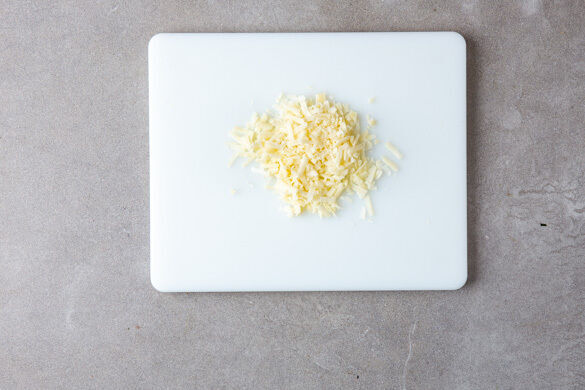 Den Käse grob reiben. Die Pasta in die Pfanne geben und mit der Sauce vermengen, je nach gewünschter Konsistenz ggf. esslöffelweise Pastawasser zugeben. Die Pasta in tiefen Tellern anrichten, mit 2EL Olivenöl beträufeln und mit dem Käse bestreut servieren.
