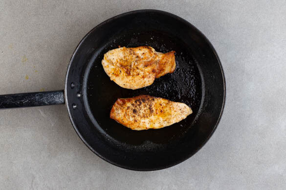 Das Fleisch in der Pfanne mit 1EL Olivenöl bei mittlerer Hitze auf jeder Seite 2–3Min. braten, dabei rundum mit der Gewürzmischung bestreuen.