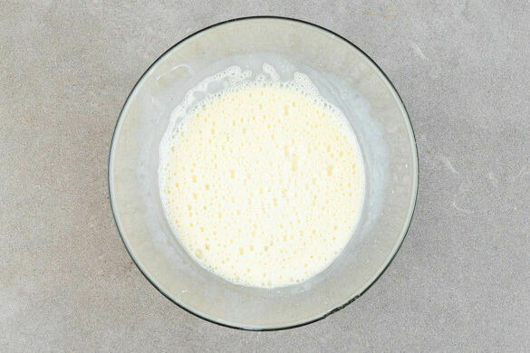 Die Eier mit 200ml Milch und je ½TL Salz und Pfeffer verquirlen.