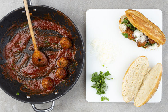Ein Klassiker, der uns in das Land der unbegrenzten Möglichkeiten führt: Das „Meatball Sub“ wurde von italienischen Einwanderern an die Ostküste der USA gebracht. Gefüllt wird das Sandwich mit saftigen Bällchen aus Rinderhack, einer fruchtigen Tomatensauce und geschmolzenem Käse. Dazu gibt es knusprige Kartoffelchips.