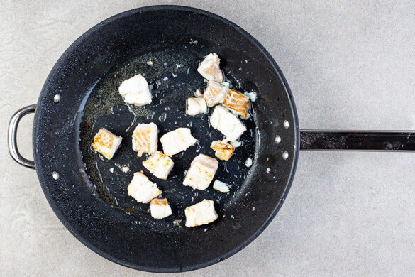 Den Fisch mit kaltem Wasser abspülen, trocken tupfen und evtl. vorhandene Gräten mit einer Pinzette entfernen. Den Fisch in einer großen Pfanne mit 2EL Olivenöl und 1 Prise Salz bei mittlerer Hitze auf jeder Seite 2–3Min. braten, bis er gar ist.