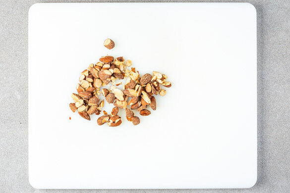 Die Rauchmandeln grob hacken.