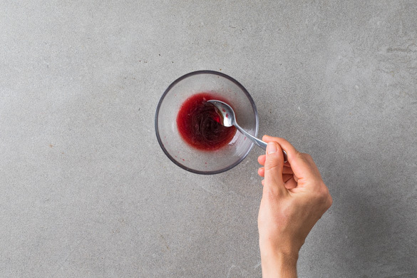 Die Granatapfelmelasse mit 1TL Olivenöl und 1 Prise Salz verrühren.