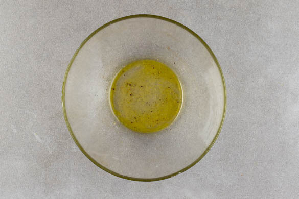 1EL Olivenöl mit 1EL hellem Essig, 1TL Honig und je 1 Prise Salz und Pfeffer zu einem Dressing verrühren.