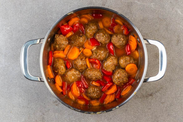 Heute präsentieren wir dir ein Gericht aus dem Mittleren Osten, das es in sich hat: Saftige Geflügelhackbällchen kochen in einem würzig-scharfen Gemüsechili mit Karotte und Paprika vor sich hin. Begleitet wird die scharfe Combo von duftendem Jasminreis, der mit frischer Petersilie und Minze verfeinert wird. Eine kulinarische Reise in die Welt der orientalischen Aromen. Guten Appetit!