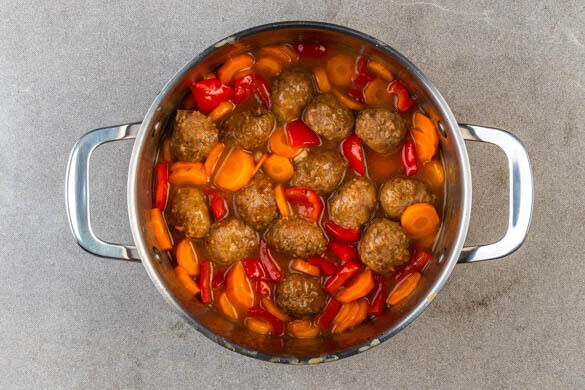 Heute präsentieren wir dir ein Gericht aus dem Mittleren Osten, das es in sich hat: Saftige Geflügelhackbällchen kochen in einem würzig-scharfen Gemüsechili mit Karotte und Paprika vor sich hin. Begleitet wird die scharfe Combo von duftendem Jasminreis, der mit frischer Petersilie und Minze verfeinert wird. Eine kulinarische Reise in die Welt der orientalischen Aromen. Guten Appetit!