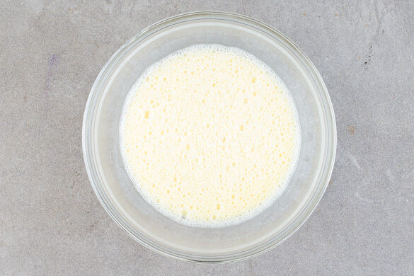 Die Eier mit 250ml Milch, der ½ des Vanillezuckers und 1EL Zucker verquirlen.
