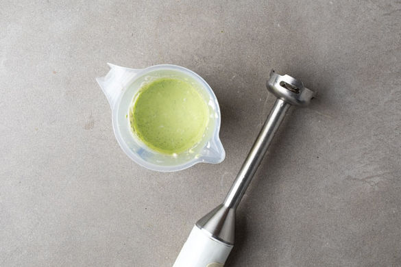 Die Basilikumblätter und die Korianderblätter von den Stängeln zupfen und fein schneiden. Den Schnittlauch in feine Röllchen schneiden. Die Kräuter mit der Crème fraîche und 1TL Zitronenschale in einem hohen Gefäß mit einem Stabmixer fein pürieren, dabei nach Wunsch 1EL Olivenöl dazugeben. Die Kräutercreme mit Zitronensaft und Salz abschmecken.
