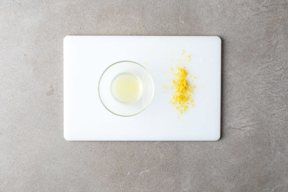Die Zitronenschale fein abreiben, dann die Zitrone halbieren und auspressen.