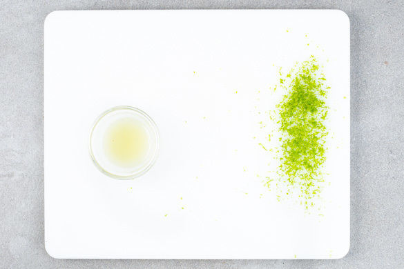 Die Limettenschale fein abreiben, dann die Limette halbieren und auspressen.
