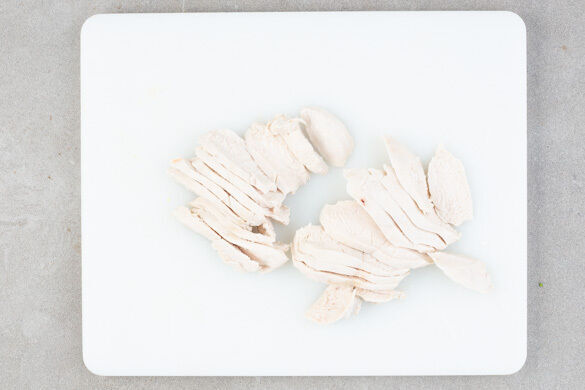 Das Fleisch in ein Sieb abgießen, in dünne Scheiben schneiden und auf dem Teig verteilen. Dann das Karotten-Zucchini-Gemüse und die pikante Ananas nach Belieben darauf anrichten. Die Tartines mit der Koriandermayo beträufeln, mit dem restlichen Koriander garnieren und servieren.