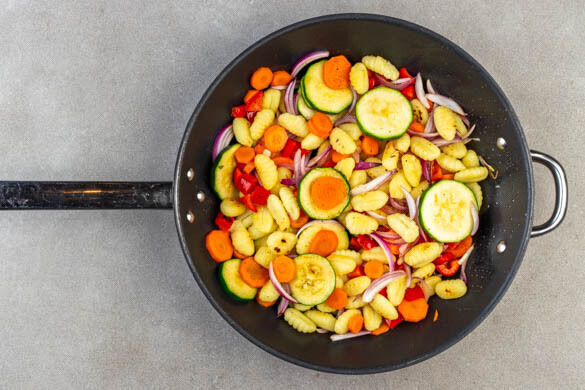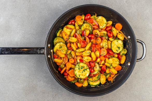 Vegane Gnocchi-Gemüse-Pfanne mit Oliven