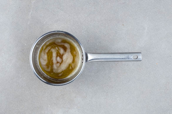 Die Butter in einem kleinen Topf bei starker Hitze schmelzen lassen, bis die Butter braun ist und angenehm nussig riecht. Die Spinatknödel mit dem Salat anrichten und mit der gebräunten Butter beträufeln. Mit den Kürbiskernen, der restlichen Petersilie und dem restlichen Käse garnieren und servieren.