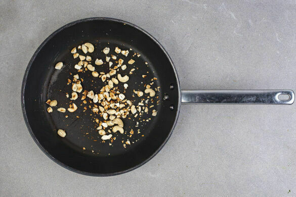 Die Bratnudeln mit Salz und Pfeffer abschmecken und auf Teller oder Schalen verteilen. Mit den Cashews und der Minze garnieren und servieren.