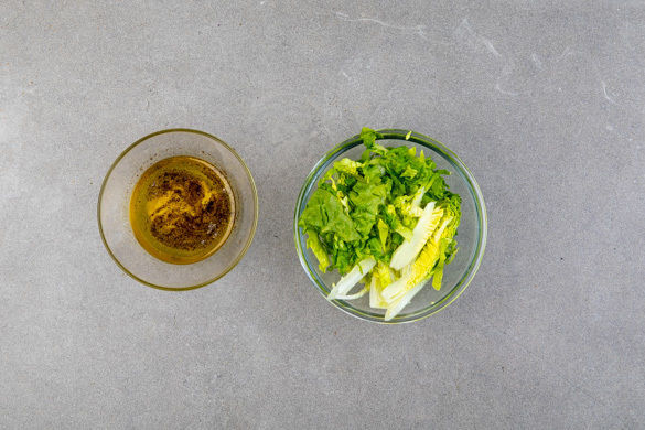 Den Salat in feine Streifen schneiden. Je 1EL Senf, Olivenöl, Essig und Wasser mit je 1 Prise Salz, Pfeffer und Zucker verrühren und den Salat untermengen. Die Kartoffeln aus dem Ofen nehmen, etwas aufschneiden und nach Belieben mit Butter und Salz garnieren. Das Fleisch in Tranchen schneiden, mit den Kartoffeln und dem Relish anrichten und servieren.