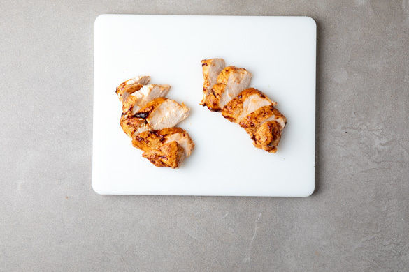 Das Fleisch mit etwas Küchenkrepp trocken tupfen, mit 1EL Pflanzenöl einreiben, mit Salz würzen und in einer mittelgroßen Pfanne bei starker Hitze auf jeder Seite 1–2Min. goldbraun anbraten. In eine Auflaufform geben und 10–15Min. garen, bis das Fleisch durch ist. Ca. 5Min. vor Ende der Garzeit das Fleisch mit der BBQ-Sauce bestreichen und zu Ende garen.
