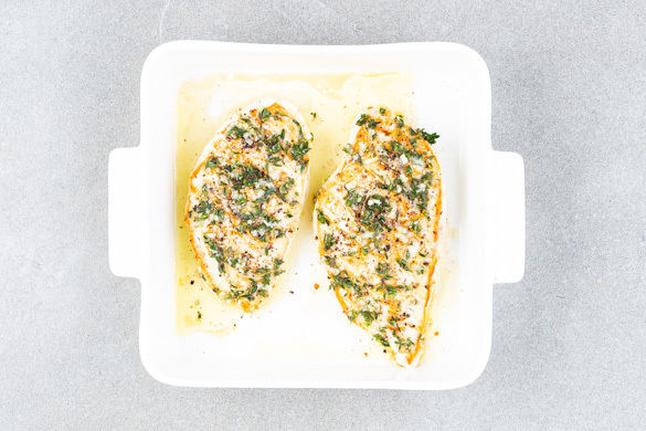 Das Fleisch in eine Auflaufform geben, mit dem Thymian-Zitronen-Öl bestreichen und anschließend im Ofen 12–15Min. garen, bis das Fleisch durch ist.
