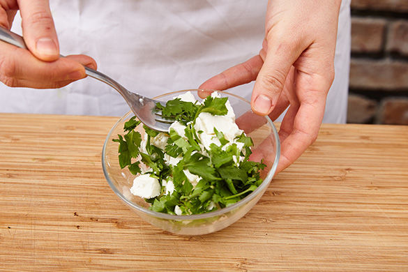 Inzwischen den Feta grob zerkrümeln und mit den Korianderblättern mischen. Den Reis mit der Sauce und mit dem Feta-Topping servieren.