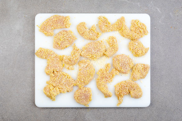 Das Panko-Paniermehl auf einen flachen Teller geben und das Fleisch nacheinander darin wenden, sodass es von allen Seiten gut bedeckt ist.