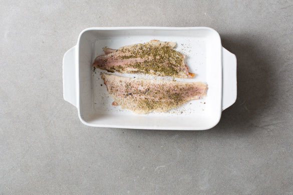 Die Forellenfilets von evtl. vorhandenen Gräten befreien und in einer kleinen Auflaufform 2–3Min. im Ofen erwärmen.