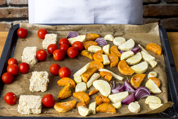 Ein Gericht, für das du schnell alles vorbereitet und in den Ofen geschoben hast. Die Süßkartoffel und die Pastinake werden mit aromatischen Kirschtomaten in einer zitronigen Marinade aus Sojasauce und Knoblauch goldbraun geröstet, während der in Sesam gewendete Fetakäse leicht schmilzt. Guten Appetit!