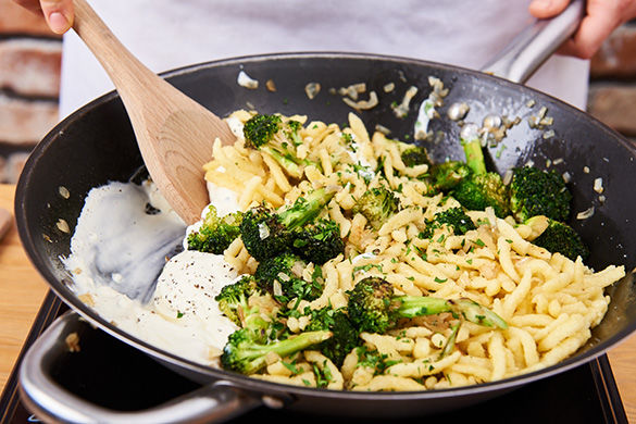 Die Pfanne erneut erhitzen und die Spätzle darin ca. 5Min. goldbraun anbraten.
