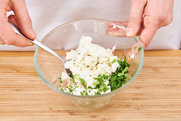 Inzwischen den Trakaja grob zerkrümeln und mit den Korianderblättern mischen. Den Reis mit der Sauce grob vermischen und mit dem Trakaja-Topping servieren.