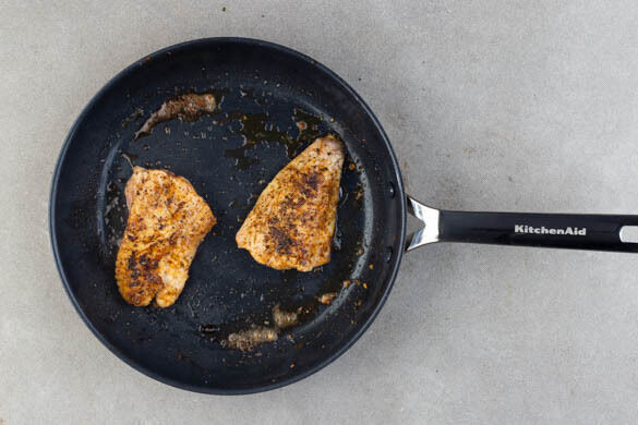 Den Fisch trocken tupfen und evtl. vorhandene Gräten mit einer Pinzette entfernen. Den Fisch in einer großen Pfanne mit 1½EL Butter bei mittlerer bis starker Hitze auf einer Seite 3–6Min braten. Wenden und auf der anderen Seite 2–3Min. braten. Mit der restlichen Gewürzmischung sowie Salz und Pfeffer abschmecken.