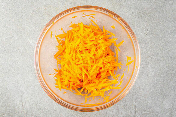 Die Karotte ggf. schälen, grob raspeln und mit 1EL hellem Essig, ½TL Honig oder Zucker sowie je 1 Prise Salz und Pfeffer vermengen. Die Zwiebel schälen, halbieren und in feine Streifen schneiden. 4EL Mayonnaise mit der Gewürzmischung und je 1 kräftigen Prise Salz und Pfeffer zu einem Dip verrühren.