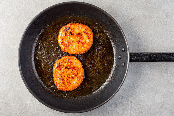 Die Paprika und die Pilze in der heißen Grillpfanne oder auf dem Grill auf jeder Seite 4–5Min. kräftig anrösten. Beiseitestellen. Die Pattys rundum mit 1TL Olivenöl bepinseln und in der Grillpfanne bzw. auf dem Grill auf jeder Seite 2–3Min. grillen.